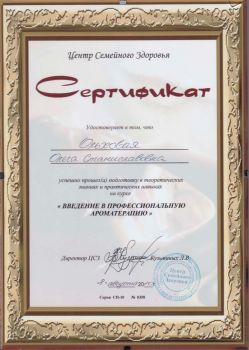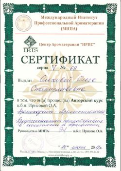 Закончила Международный Институт Профессиональной Ароматерапии в Москве
