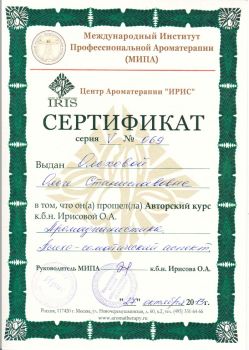 Закончила Международный Институт Профессиональной Ароматерапии в Москве